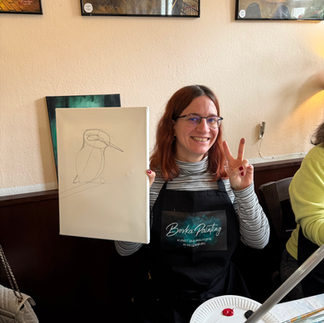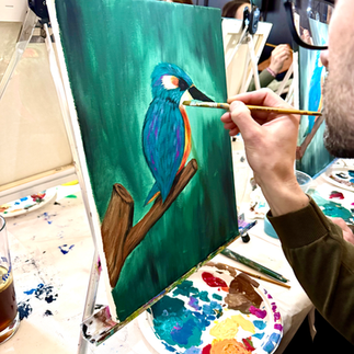 Wir haben mit intuitiven und teilweise abstrakten Pinselstrichen gearbeitet, um ein lebendiges, leuchtendes Federkleid zu erschaffen – ohne jede einzelne Feder zu malen. Dazu gab es natürlich auch eine kleine Portion Farblehre und Wissen über Komplementärfarben, damit das Blau und Orange des Eisvogels am Ende richtig strahlen.